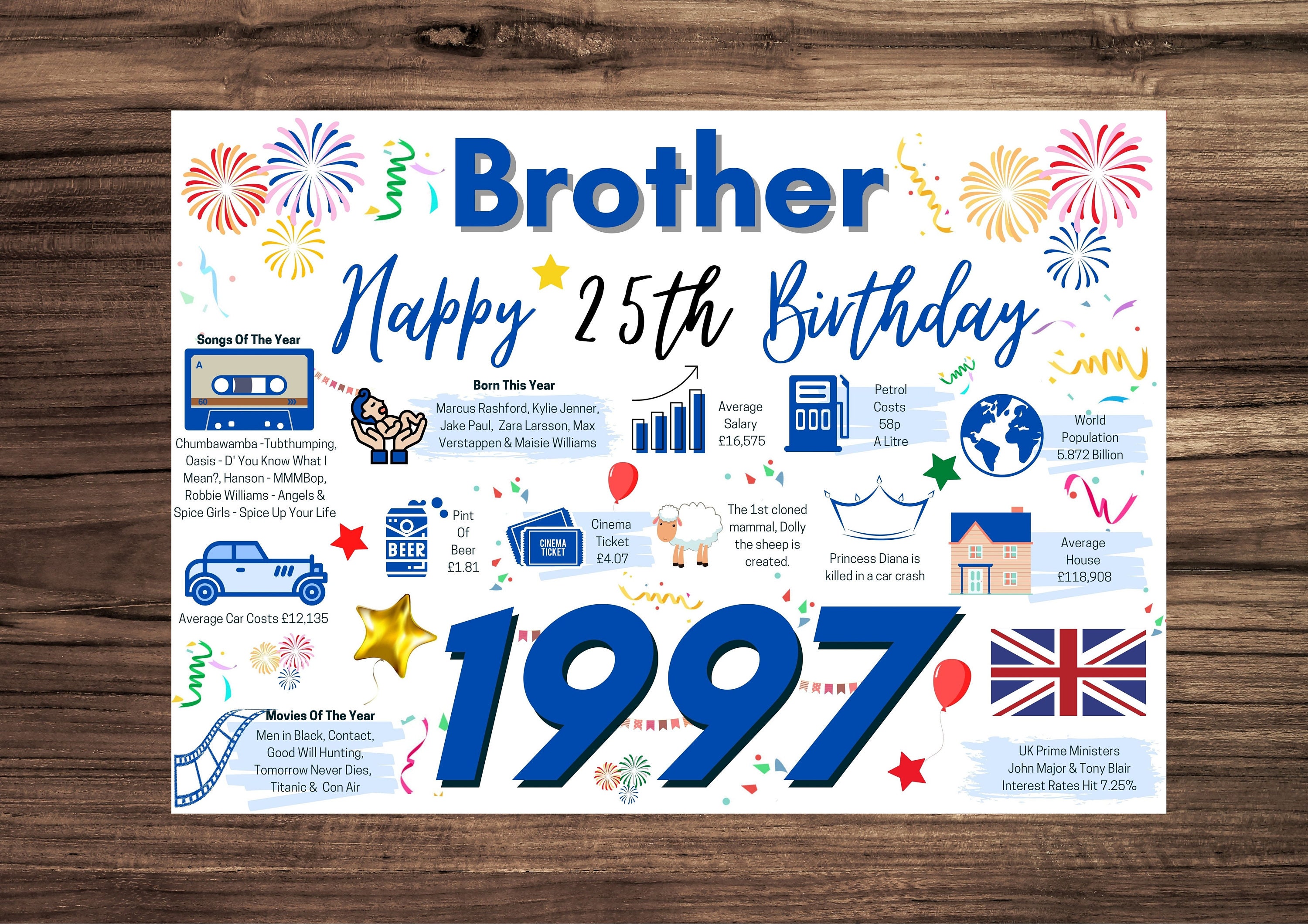 25th Birthday Card For Brother Birthday Card For Him Happy Etsy Sweden